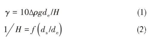 式中,γ為界面張力,mN/m;,Δρ為兩相密度差,kg/m3;g為重力加速度,g=9.80 m/s2;de為懸滴最大直徑,m。油滴尺寸如圖1標(biāo)注,ds為距油滴頂點垂直距離為de處油滴截面直徑,m。1H可由Andreas等建立的函數(shù)表得到。