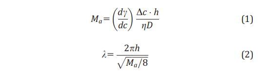 為了量化溶質 Marangoni 效應,25,26,30,31 我們估計 馬蘭戈尼數(shù) (Ma) 和馬蘭戈尼波長 (k).32