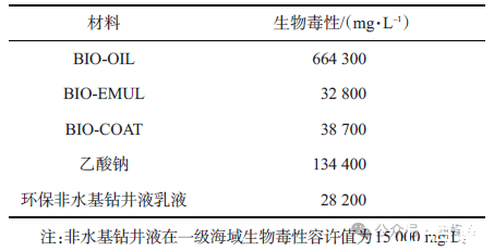 表2環保非水基鉆井液乳液組分及體系的生物毒性
