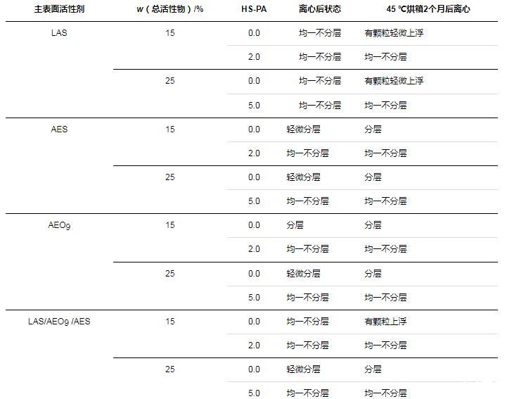 2.3 HS-PA在非結(jié)構(gòu)型洗滌劑中的應(yīng)用
