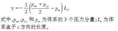 每個模型都經過100 ns的MD模擬,保證油水界面充分達到平衡狀態,油水界面張力的計算采用50 ns的數據,通過3次獨立模擬獲得界面張力數值。本文中對界面張力(IFT)的計算方法選用Gibbs界面張力計算法,模型中油水界面位于XY平面內,界面張力計算公式為