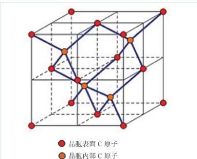 金剛石是由碳原子構(gòu)成的復(fù)式晶格結(jié)構(gòu),如圖12所示。金剛石這種特殊結(jié)構(gòu)決定其具有獨特的光學(xué)性能。金剛石透光范圍寬,具備紫外~可見~遠(yuǎn)紅外波段的穿透性,從紫外(0.22μm)到遠(yuǎn)紅外(40——1000μm),除4μm——6μm位置上存在微小本征吸收峰(吸收系數(shù)為12.3 cm?1)之外,不存在其他吸收峰。