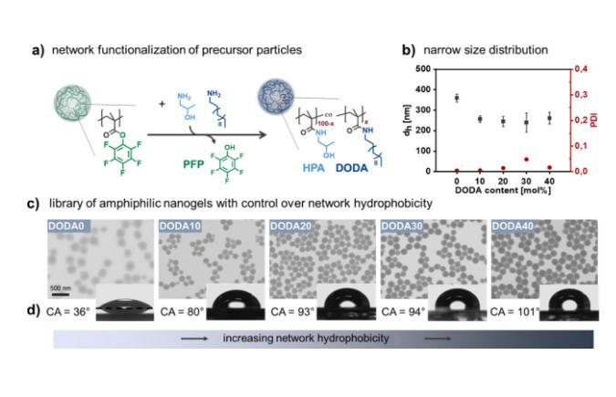 圖1.具有不同網(wǎng)絡疏水性但類似膠體性質的兩親性納米凝膠庫