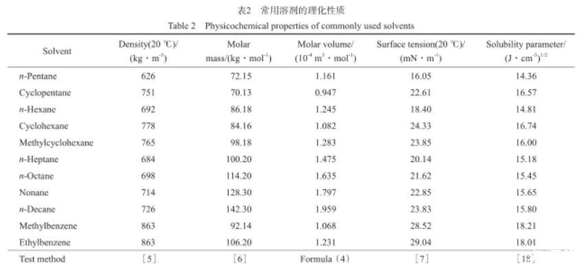 常用溶劑的理化性質(zhì)見(jiàn)表2。