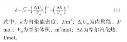 式中,e為內(nèi)聚能密度,J/m3;ΔrUm為內(nèi)聚能,J/mol;Vm為摩爾體積,m3/mol;ΔE為摩爾汽化熱,J/mol。