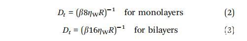 其中 ZW = 0.001 N sm? 2 是水的粘度,Zm 是 二維膜粘度,R是半徑 正在分析的域。 對于雙層,包括因子二 在分母中,因為水存在于分母的兩側 膜.54