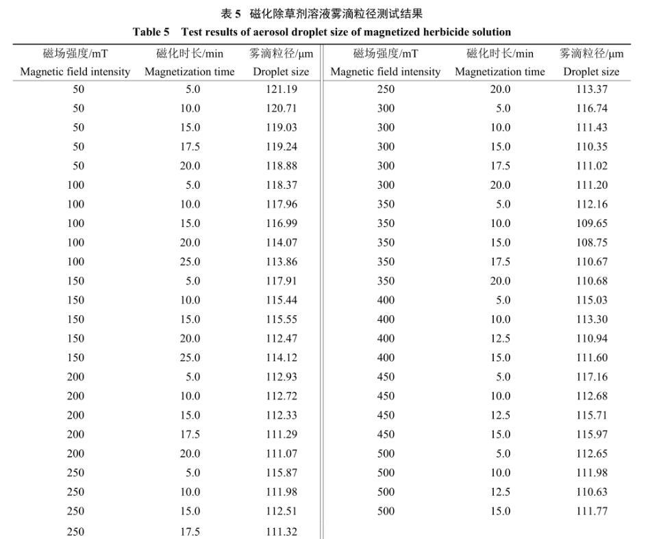 > 磁場強度和磁化時長對除草劑溶液表面張力、噴霧霧滴粒徑的影響(二)