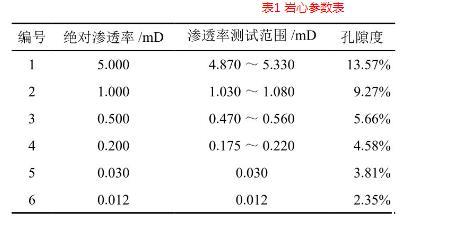 表1巖心參數表