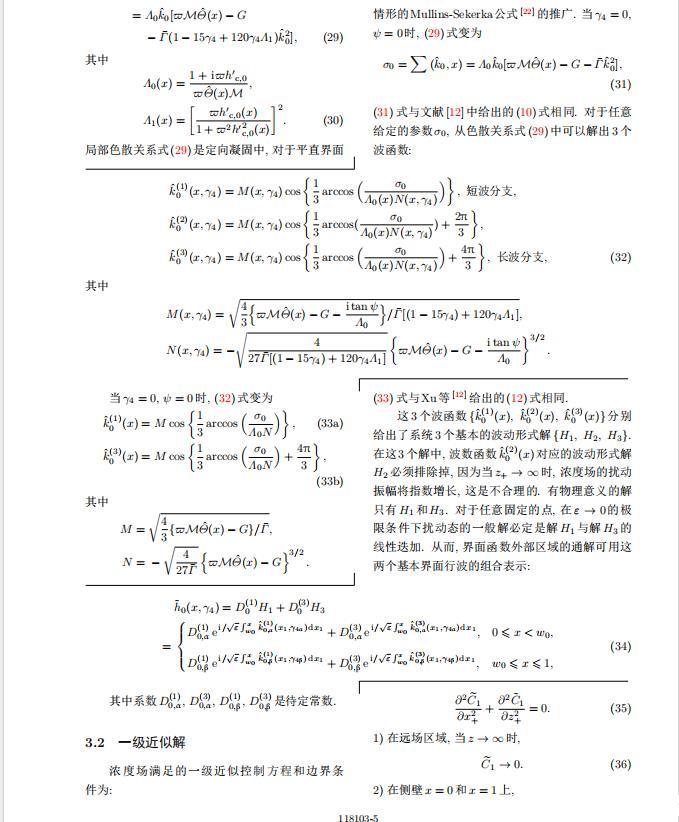 將系統方程以振幅遠小于1進行線性化處理,結合(1)式—(4)式,可以得到共晶生長系統的擾動態滿足以下控制方程和邊界條件: