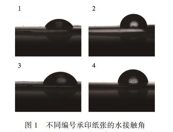 圖1不同編號承印紙張的水接觸角