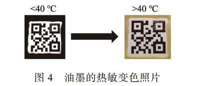 進一步探索通用油墨功能化的可能性。在通用油墨的配方中引入熱敏黑材料,以檢驗其熱變色防偽性能。如圖4所示,二維碼的黑色邊框采用熱敏黑復合通用油墨。當溫度>40℃時,中間的普通商用油墨顏色保持不變,而熱敏黑復合通用油墨邊框則逐漸變為淡黃色。