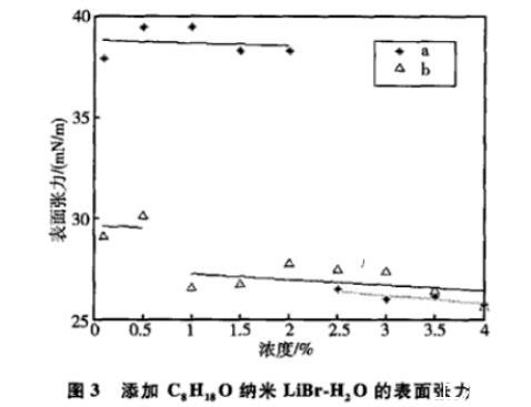 圖3添加C8 H 18 O納米LiBr-H 2 O的表面張力