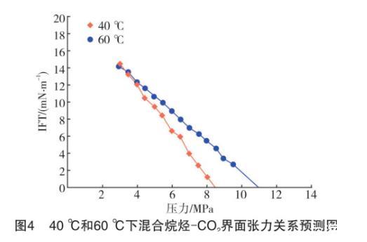 (1)烷烴組分。對比文獻的結果發現,40℃和60℃下所得到的MMP值均小于文獻值,其結果對比見表3。