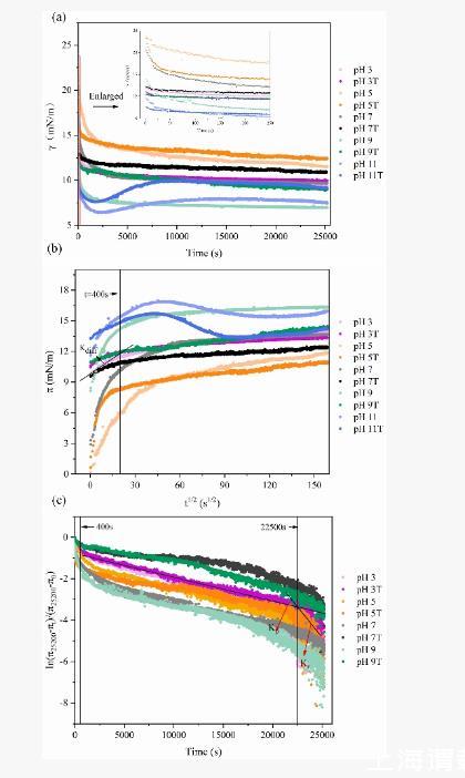 預(yù)實驗驗證蛋白質(zhì)在界面的吸附行為:通過動態(tài)界面張力曲線(γ-t)判斷是否達(dá)到平衡(斜率趨近于0),若長時間不穩(wěn)定(如持續(xù)下降),可能是蛋白質(zhì)未完全溶解或溶液中有雜質(zhì)。