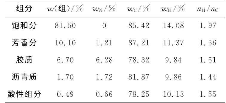 1.2.1原油組分分離采用SARA四組分分離方法得到飽和分、芳香分、膠質和瀝青質。采用醇堿萃取法分離得到酸性組分。