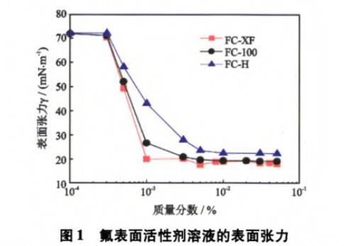 圖1氟表面活性劑溶液的表面張力