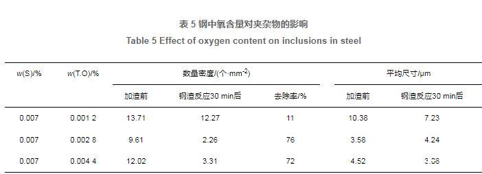 表5鋼中氧含量對夾雜物的影響