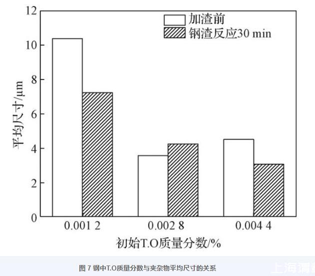 圖7鋼中T.O質量分數與夾雜物平均尺寸的關系