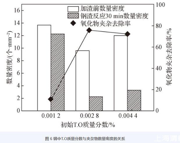圖6鋼中T.O質量分數與夾雜物數量密度的關系