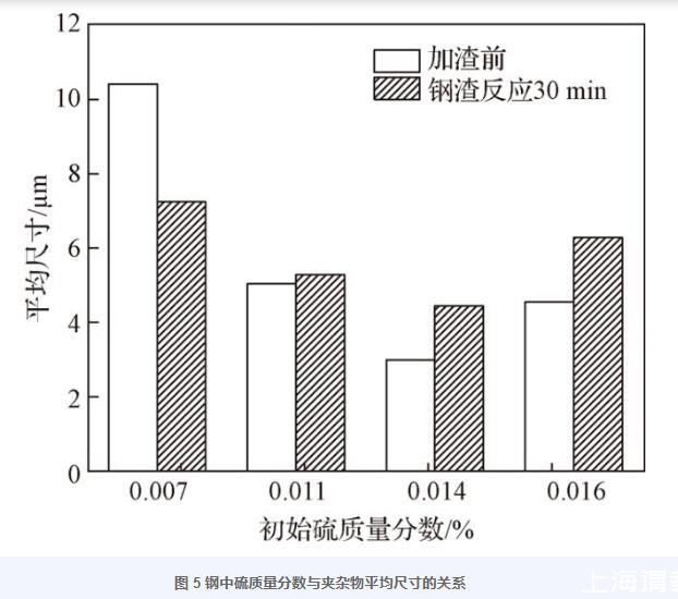 圖5鋼中硫質量分數與夾雜物平均尺寸的關系