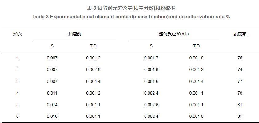 表3試驗鋼元素含量(質量分數)和脫硫率