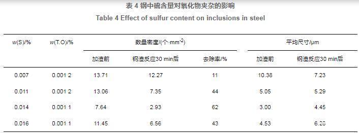 表4鋼中硫含量對氧化物夾雜的影響