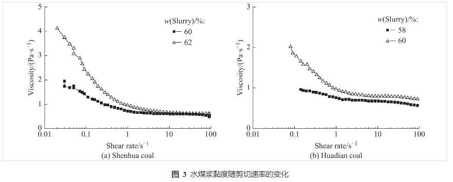 圖3水煤漿黏度隨剪切速率的變化