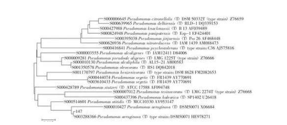 圖1 147菌株16S rDNA基因序列系統(tǒng)發(fā)育樹