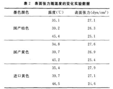 對于主要成分是有機(jī)油類的陶瓷墨水,隨著溫度的升高,內(nèi)部分子運(yùn)動加劇,分子之間距離增大,使得分子力減弱,從而導(dǎo)致液體表面使其面積縮小的力減弱,即表現(xiàn)為表面張力減小(見圖2)。