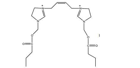 1,4-二((丁酰氧基)-3-甲基咪唑啉)丁烯的制備方法,包括:N-羥甲基咪唑啉和酰氯在四氫呋喃中反應(yīng),旋蒸得到產(chǎn)物,產(chǎn)物經(jīng)洗滌后,加入正己烷和1,4-二溴丁烯攪拌反應(yīng),過濾后得到1,4-二((丁酰氧基)-3-甲基咪唑啉)丁烯。