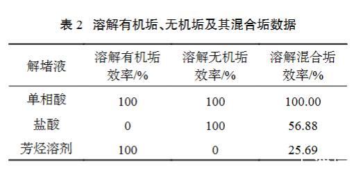 表2溶解有機垢、無機垢及其混合垢數據