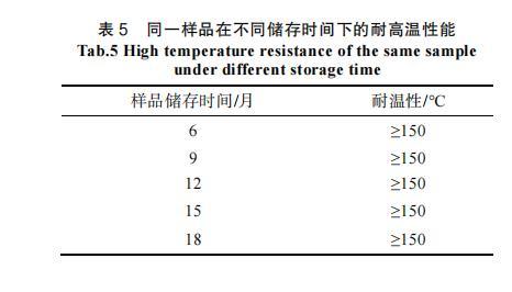 表5同一樣品在不同儲存時間下的耐高溫性能