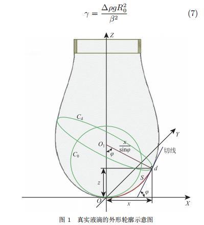 聯(lián)立式(2)~(4),化簡可得懸滴法的測量工作方程為:
