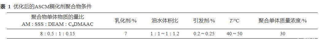 表1優化后的ASCM稠化劑聚合物條件