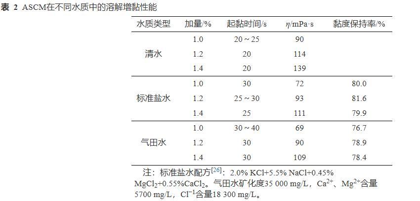 表2 ASCM在不同水質中的溶解增黏性能