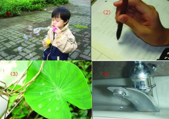 細心觀察蓮花、芋頭葉及甘藍菜的葉面,我們發現水珠可以在這些葉面上自由的滾動。自來水筆的墨水不會因地心引力而滴出、毛筆上的墨汁不會掉下來。水滴在水龍頭下會慢慢形成一個球狀的液滴再滴下來,肥皂泡泡吹出來不會破。這些現象都是和表面張力有關。水珠能在荷葉上自由的滾動,這是因為水在葉面上的接觸角介于130~160度之間,接觸角大顯示出水珠不易潤濕表面。而自來水筆的墨水不會滴出來以及毛筆的墨汁不會掉下來是因為液體的毛細管現象。因為毛細管的水與管壁的接觸角小于90度,表示水與管壁的附著力較水分子間的內聚力大,由于附著力與表面張力的相互作用,一垂直毛細管端的液滴會被吸住,并和重力達到平衡,這就是自來水筆的墨水不會因地心引力而滴出的原因。而便宜的原子筆往往因表面張力的控制不良而不順暢或油墨溢出。毛筆上的墨汁不會掉下來也是毛細現象的關系。
