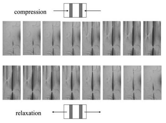 圖4在4倍放大的透射光顯微鏡下,擴(kuò)展HFBII層的壓縮和松弛。