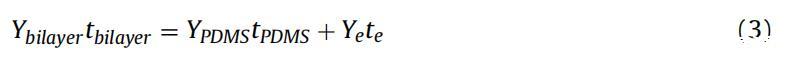 測量裸PDMS膜的楊氏模量后,將單層電極轉移到這些PDMS膜上。使用與裸PDMS膜相同的參數測定PDMS+電極雙層的楊氏模量。PDMS+電極雙層由兩個長度和寬度相等的粘附層形成,因此使用[33]計算電極楊氏模量: