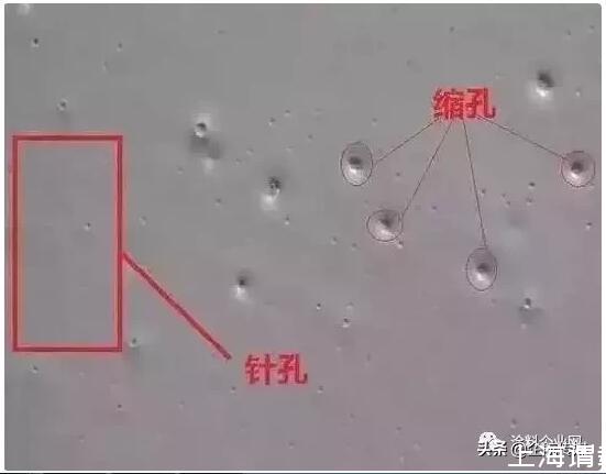 針孔是因氣體(空氣或反應產生的氣體等)排出產生的,而縮孔而是因潤濕不良產生,如底材與上涂表面張力差距過小,或底材受污染,也有的是上涂漆中受消光劑或綞紋劑等污染而產生——這類一般在涂膜中呈均勻分布,在何時何地出現也沒有規律可尋,且形狀是很小的點狀縮孔。