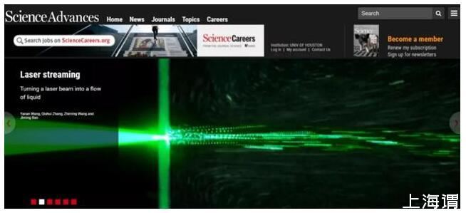 圖|Science Advances官網首頁報道光致超聲驅動宏觀流體運動(來源:Science Advances)