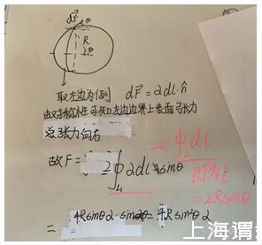 (在這里因為一個肥皂泡膜與兩個介值相接觸,所以膜的兩側各形成一個表面張力,由于肥皂泡厚度很小,所以這兩個表面張力近似相等)