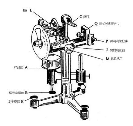 表面張力儀的結(jié)構(gòu),主要由扭力絲、鉑金環(huán)、支架、杠桿架、蝸輪付等組成。使用時(shí)通過蝸輪付的旋轉(zhuǎn)對(duì)扭力絲施加扭力,并使該扭力與液體表面接觸的鉑金環(huán)對(duì)液體的表面張力相平衡,當(dāng)扭力繼續(xù)增加,液面被拉破時(shí),扭力絲扭轉(zhuǎn)的角度,用刻度盤上的游標(biāo)指示出來,此值就是M值,用mN/m表示。最后用M值乘以校正因子F,即得液體實(shí)際表面張力值δ。