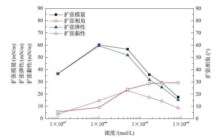 界面擴張流變參數與濃度的關系(懸掛滴方法)