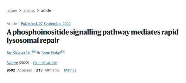 9月7日,來自匹茲堡大學(xué)醫(yī)學(xué)院細胞生物學(xué)系的譚小軍博士與衰老研究所所長Toren Finkel博士在《自然》(Nature)雜志發(fā)表了一篇題為“A phosphoinositide signalling pathway mediates rapid lysosomal repair”的細胞生物學(xué)領(lǐng)域研究論文。研究者們通過一系列實驗,首次描述了一種溶酶體修復(fù)的核心途徑:PITT途徑(phosphoinositide-initiated membrane tethering and lipid transport)。通過該途徑,細胞能快速修復(fù)已受損的溶酶體。該發(fā)現(xiàn)將協(xié)助人們進一步了解和治療由溶酶體受損驅(qū)動的與年齡相關(guān)的疾病。