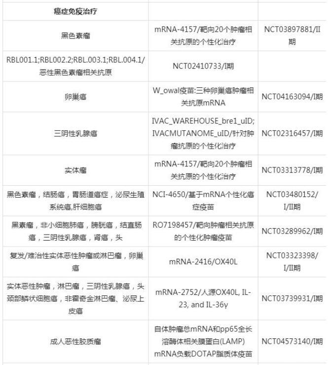 表2臨床試驗中的脂質(zhì)納米粒mRNA藥物和疫苗