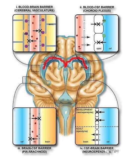 血腦屏障限制了病原體的通過(guò),溶質(zhì)在血液中的擴(kuò)散,以及大或親水分子進(jìn)入腦脊液(CSF),同時(shí)允許疏水分子(O2,CO2,激素)和小極性分子的擴(kuò)散[4]。屏障細(xì)胞使用特定的轉(zhuǎn)運(yùn)蛋白主動(dòng)將代謝產(chǎn)物如葡萄糖轉(zhuǎn)運(yùn)穿過(guò)屏障。[5]