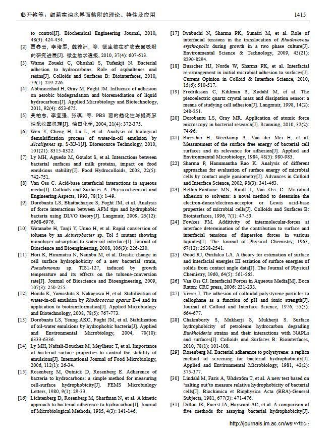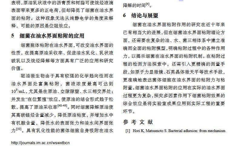 細菌在油水界面粘附的理論、特性及應用