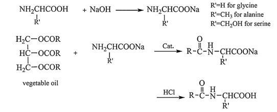 Scheme 1.從植物油和相應(yīng)氨基酸的鈉鹽中合成酰基氨基酸。
