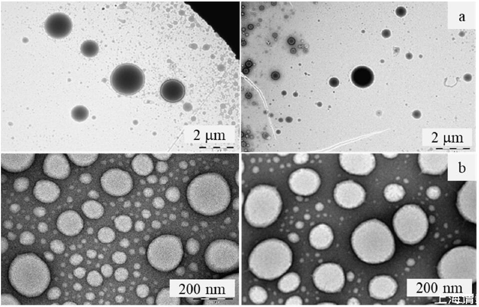 圖3所示。在5 × CMC下,SCAG (a)、SCAA (b)、SCAS (c)和SCOS (d)水溶液中的團(tuán)聚體的TEM顯微照片。