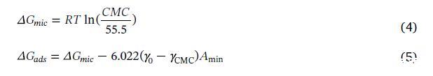 盡管對(duì)于是否應(yīng)該修改Gibbs分析存在一些爭(zhēng)論[19,20]。ΔGads和ΔGmic是由Rosen的方法計(jì)算得出的: